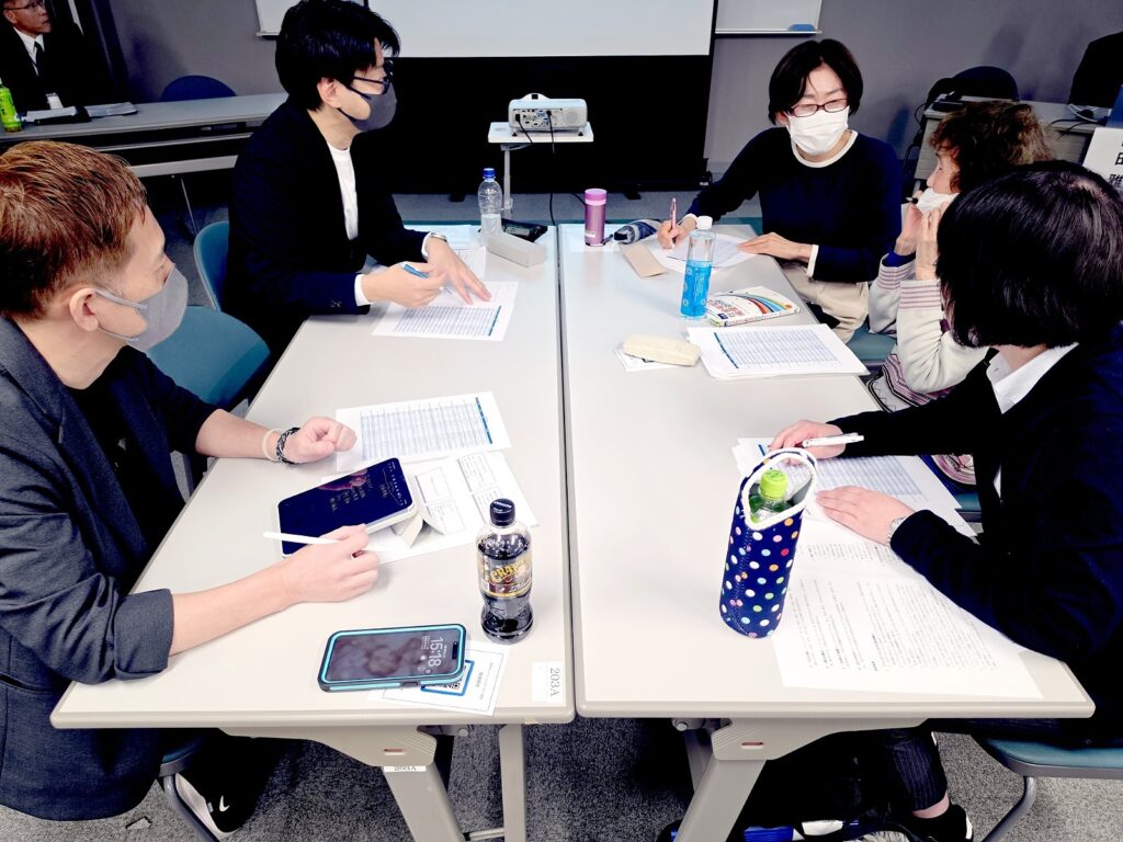 講義の内容や日頃の実践を踏まえながら、倫理綱領との向き合い方と今後の実践への活かし方について意見交換を行いました。参加者からは、「日々の支援の中で倫理的な迷いが多くある」「明日は日曜日なので「自己管理(リフレッシュ)」します!」といった声が聞かれ、倫理綱領に立ち返ることの大切さを改めて共有する機会となりました。和やかな雰囲気のなかで活発な意見交換が行われ、学びを深める充実した時間となりました。