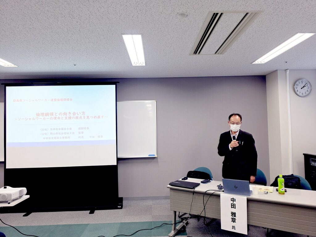 本会と群馬県社会福祉士会・群馬県精神保健福祉士会で構成される群馬県ソーシャルワーカー連盟の主催による「倫理研修」が開催されました。連盟としては初めての倫理研修となりましたが、当日は多くの方にご参加いただきました。
